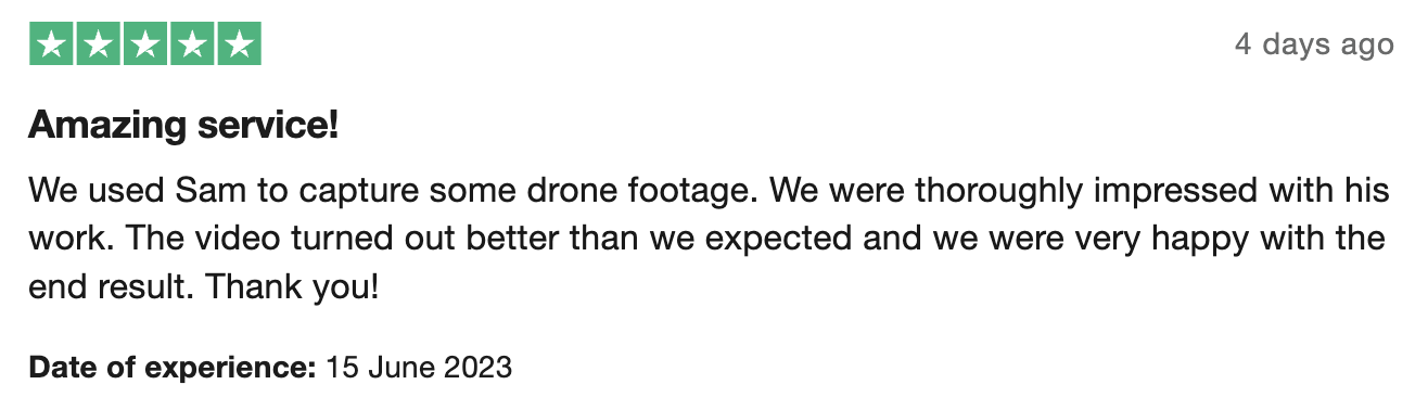 Service provided: Drone Filming 4 hours